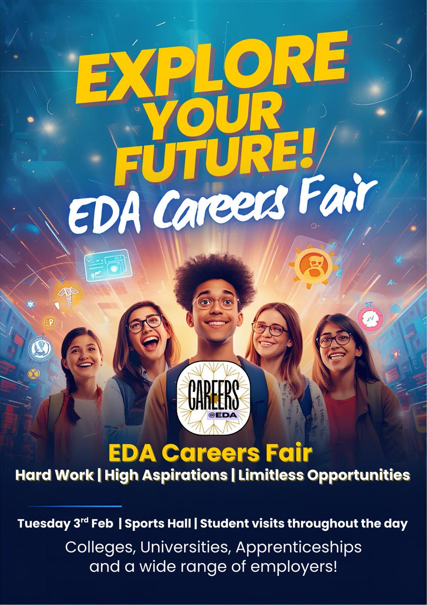 Our first Careers Fair is taking place this half term. All EDA superstars will have the opportunity to access this as part of our careers offer. Really looking forward to welcoming all of these external visitors to the Academy to meet our amazing young people #weareEDA